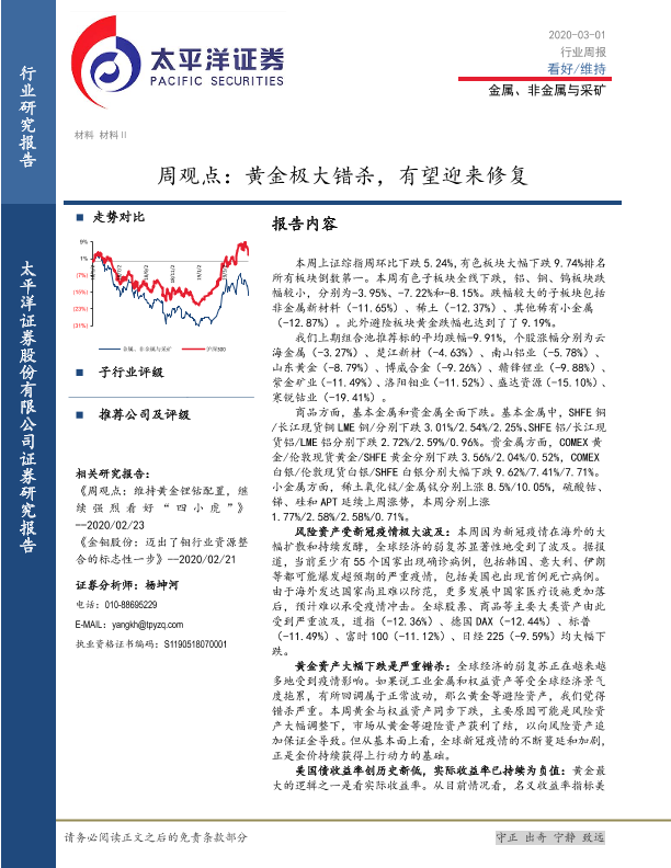 【太平洋证券】【20200301】20200301-太平洋-金属、非金属与采矿周观点:黄金极大错杀,有望迎来修复-4页