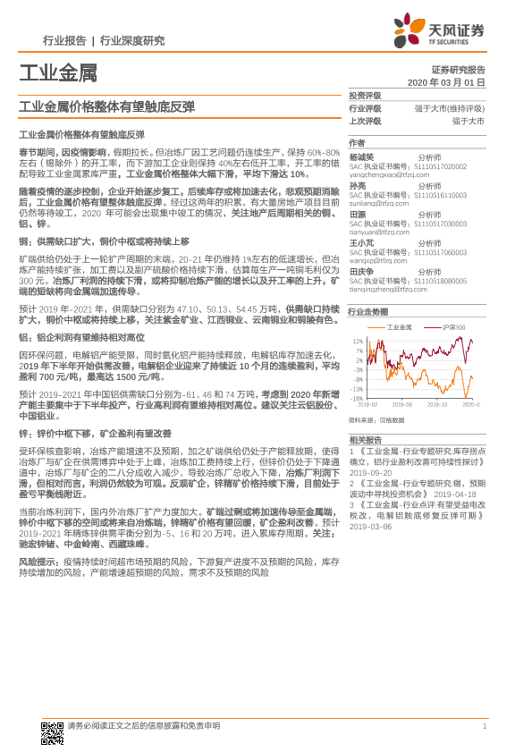 【天风证券】【20200301】工业金属行业深度研究:工业金属价格整体有望触底反弹-13页