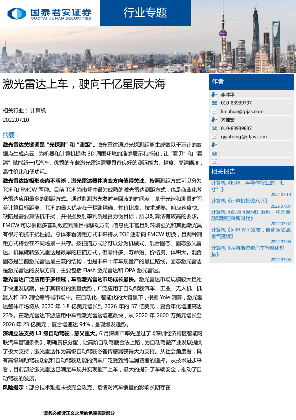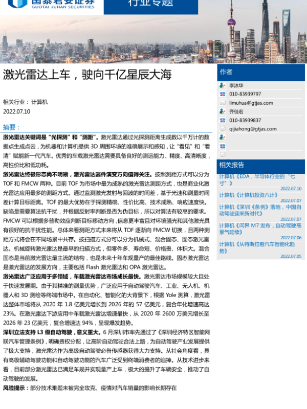 【国泰君安证券】【20220710】激光雷达上车,驶向千亿星辰大海-73页