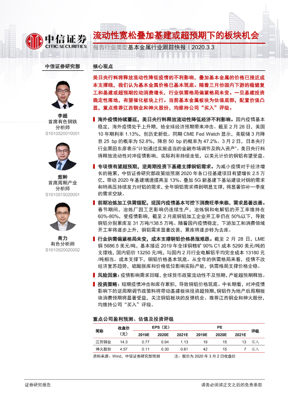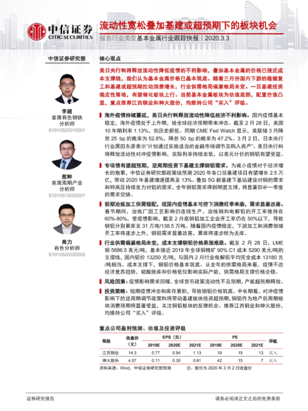 【中信证券】【20200303】基本金属行业跟踪快报:流动性宽松叠加基建或超预期下的板块机会-2页