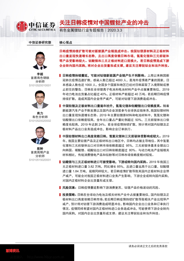 【中信证券】【20200303】关注日韩疫情对中国锂钴产业的冲击-17页