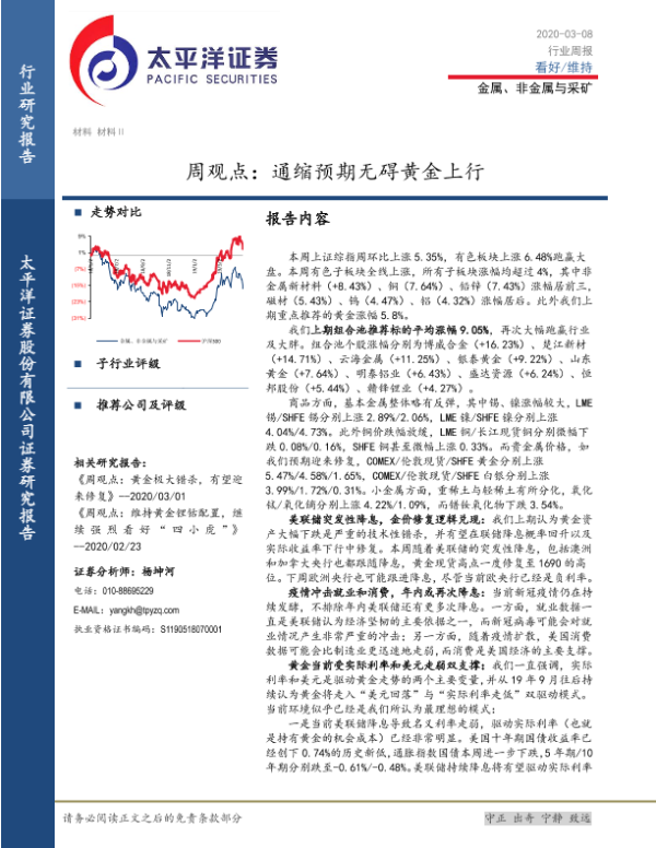 【太平洋证券】【20200308】20200308-太平洋-金属、非金属与采矿周观点:通缩预期无碍黄金上行-4页