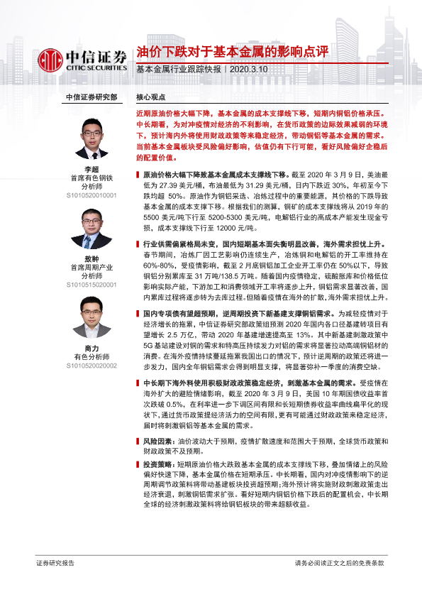 【中信证券】【20200310】油价下跌对于基本金属的影响点评-2页