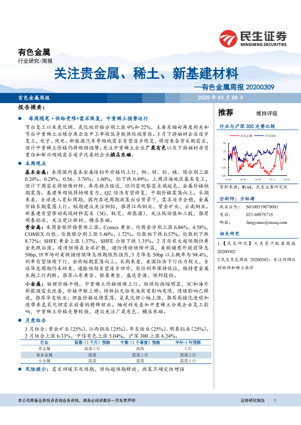 【民生证券】【20200309】20200309-民生证券-有色金属周报:关注贵金属、稀土、新基建材料-18页
