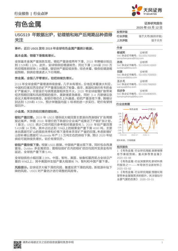 【天风证券】【20200312】20200312-天风证券-有色金属:USGS19年数据出炉,钴锂锆和地产后周期品种值得关注-6页