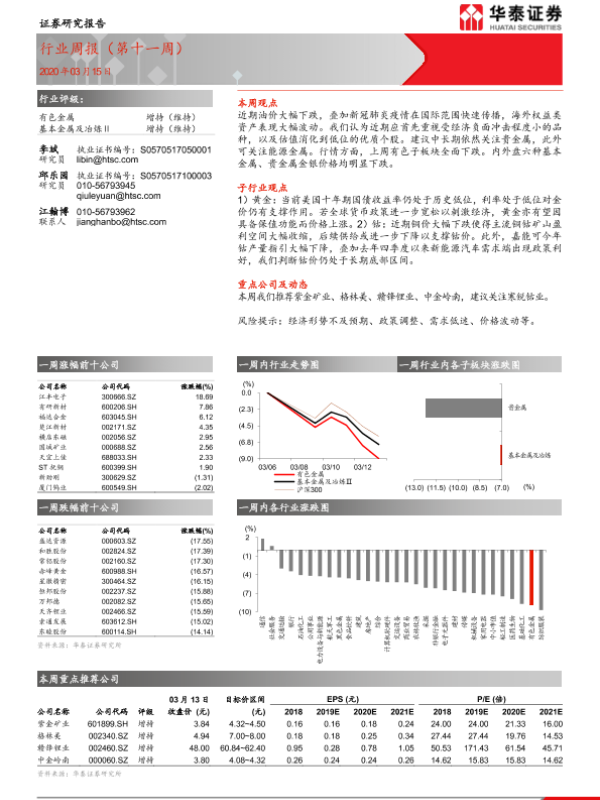 【华泰证券】【20200315】20200315-华泰证券-有色金属行业周报(第十一周)-14页