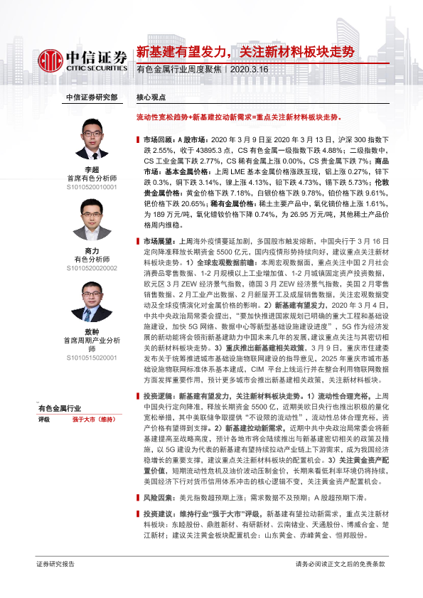 【中信证券】【20200316】20200316-中信证券-有色金属行业周度聚焦:新基建有望发力,关注新材料板块走势-17页