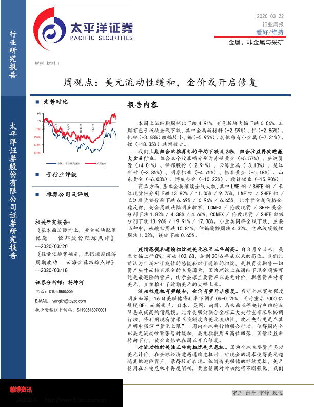【太平洋证券】【20200322】20200322-太平洋-金属、非金属与采矿周观点:美元流动性缓和,金价或开启修复-4页