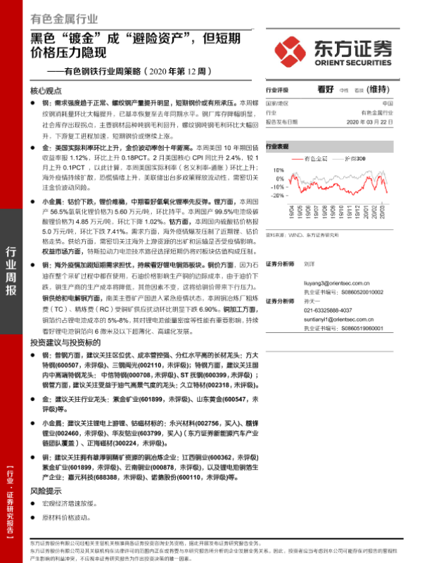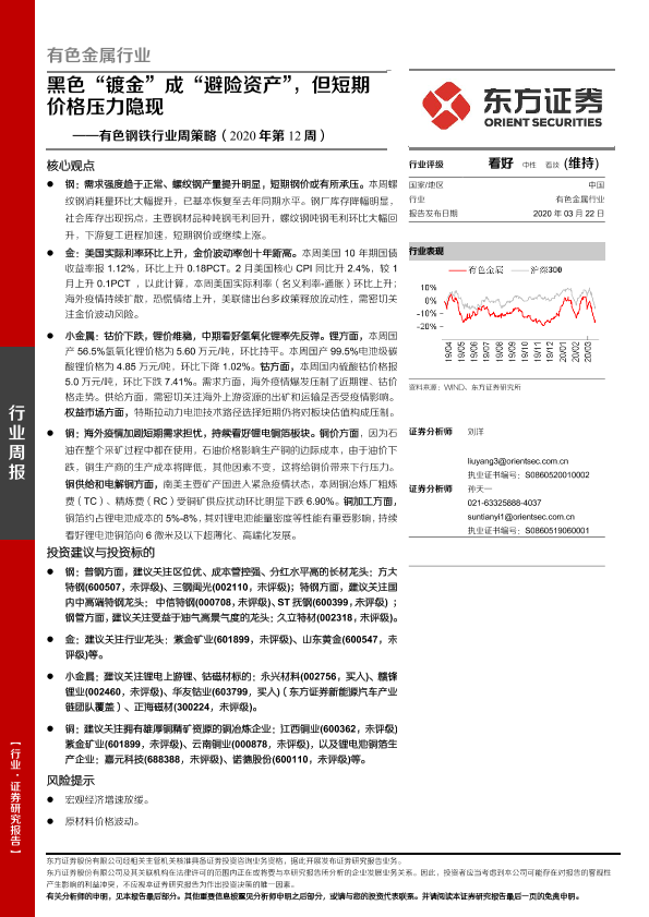 【东方证券】【20200322】20200322-东方证券-有色钢铁行业周策略(2020年第12周):黑色“镀金”成“避险资产”,但短期价格压力隐现-26页