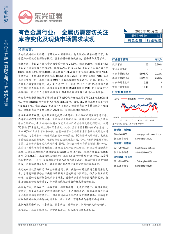 【东兴证券】【20200323】有色金属行业:金属仍需密切关注库存变化及现货市场需求表现-15页