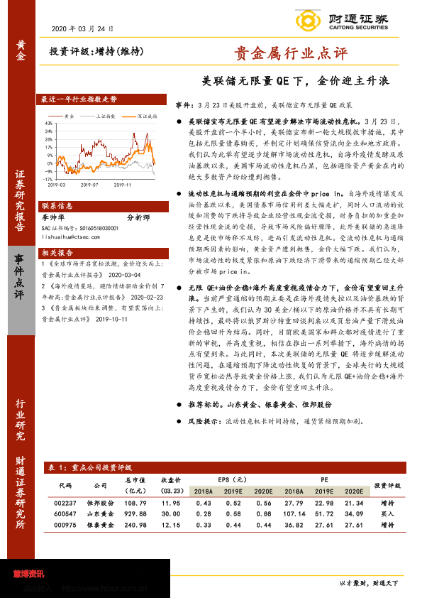 【财通证券】【20200324】贵金属行业点评:美联储无限量QE下,金价迎主升浪-2页