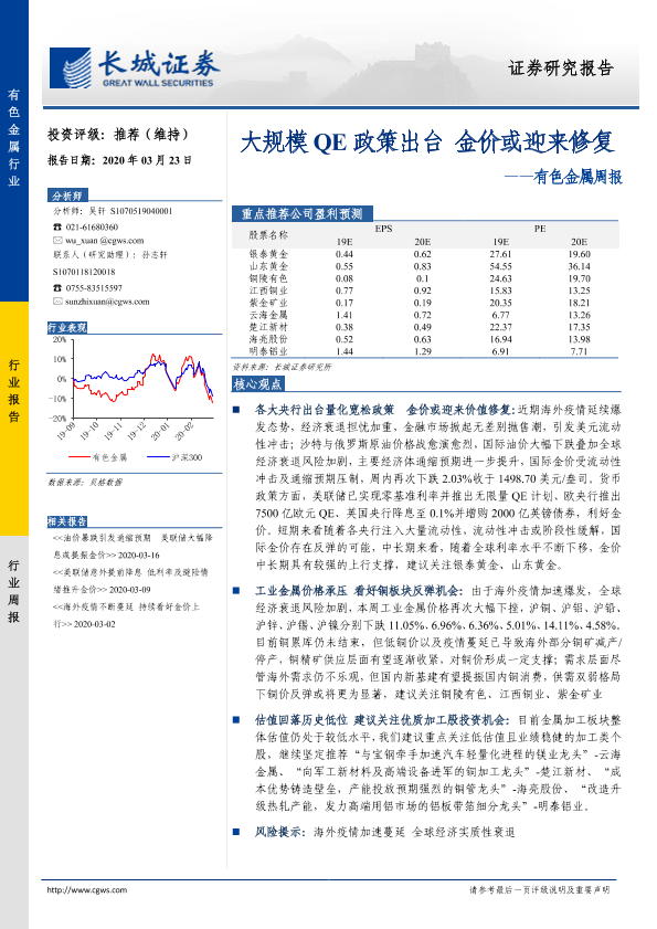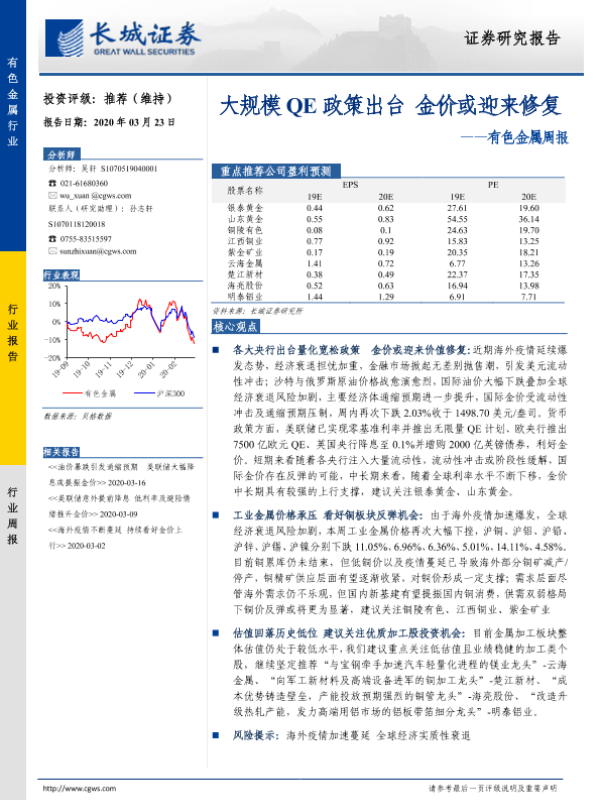【长城证券】【20200323】20200323-长城证券-有色金属周报:大规模QE政策出台 金价或迎来修复-11页