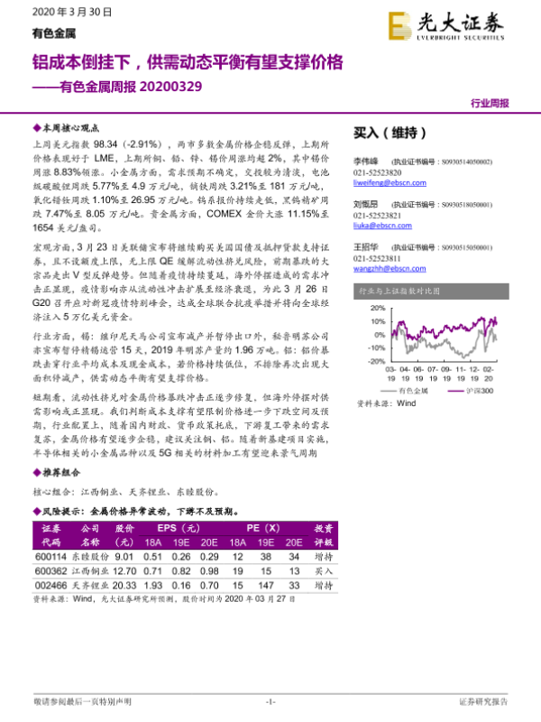 【光大证券】【20200330】20200330-光大证券-有色金属周报:铝成本倒挂下,供需动态平衡有望支撑价格-14页