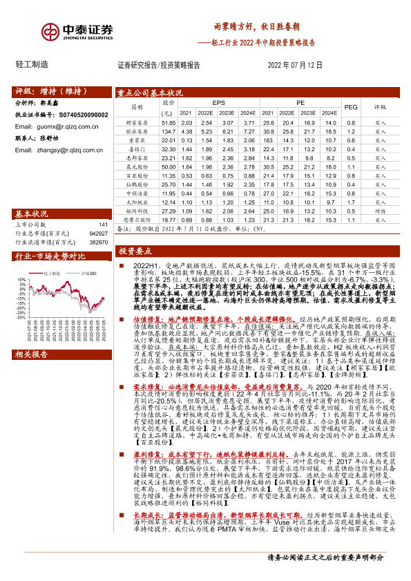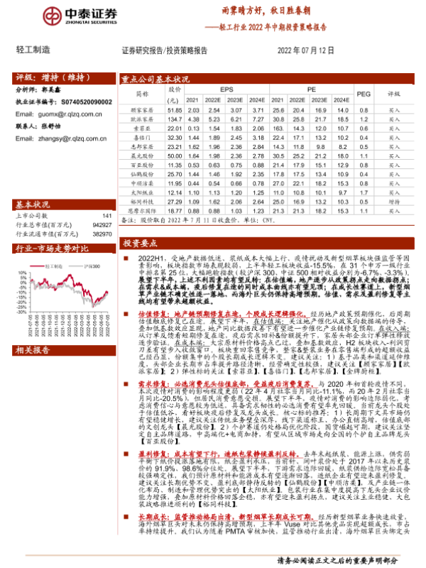 【中泰证券】【20220712】轻工行业2022年中期投资策略报告:雨霁晴方好,秋日胜春朝-37页