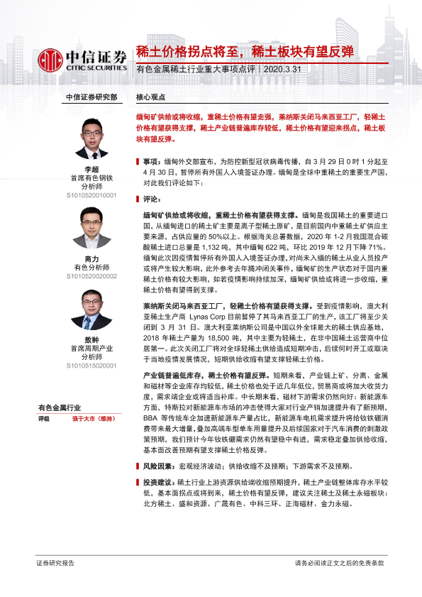 【中信证券】【20200331】20200331-中信证券-有色金属稀土行业重大事项点评:稀土价格拐点将至,稀土板块有望反弹-2页