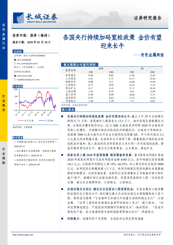 【长城证券】【20200330】20200330-长城证券-有色金属周报:各国央行持续加码宽松政策 金价有望迎来长牛-11页