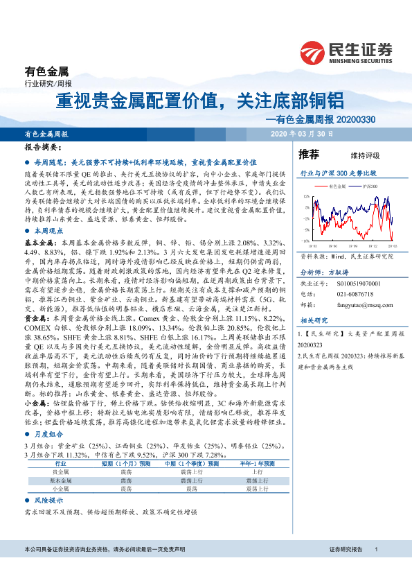 【民生证券】【20200330】20200330-民生证券-有色金属周报:重视贵金属配置价值,关注底部铜铝-17页