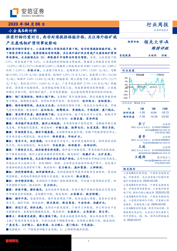 【安信证券】【20200406】20200406-安信证券-小金属&新材料行业周报:供需好转仍需时日,南非封港提振铬锰价格,关注海外锆矿减产及鹿鸣钼矿溃坝事故影响-29页