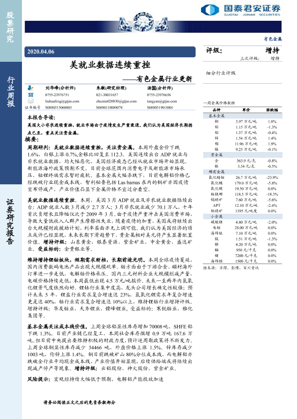 【国泰君安证券】【20200406】20200406-国泰君安-有色金属行业更新:美就业数据连续重挫-13页