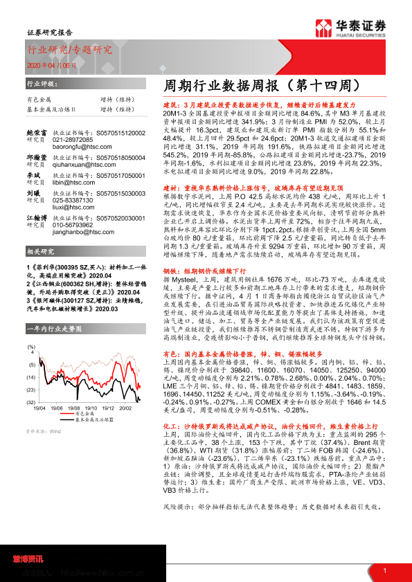 【华泰证券】【20200406】20200406-华泰证券-有色金属周期行业数据周报(第十四周)-42页