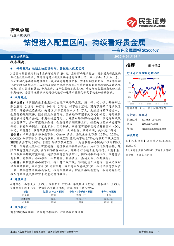 【民生证券】【20200407】20200407-民生证券-有色金属周报:钴锂进入配置区间,持续看好贵金属-18页