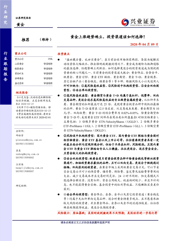 【兴业证券】【20200409】黄金上涨趋势确立,投资渠道该如何选择?-13页
