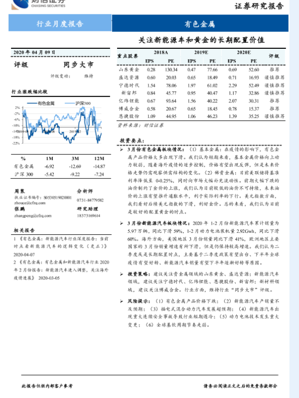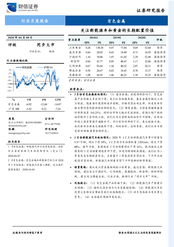 【财信证券】【20200409】有色金属行业月度报告:关注新能源车和黄金的长期配置价值-12页