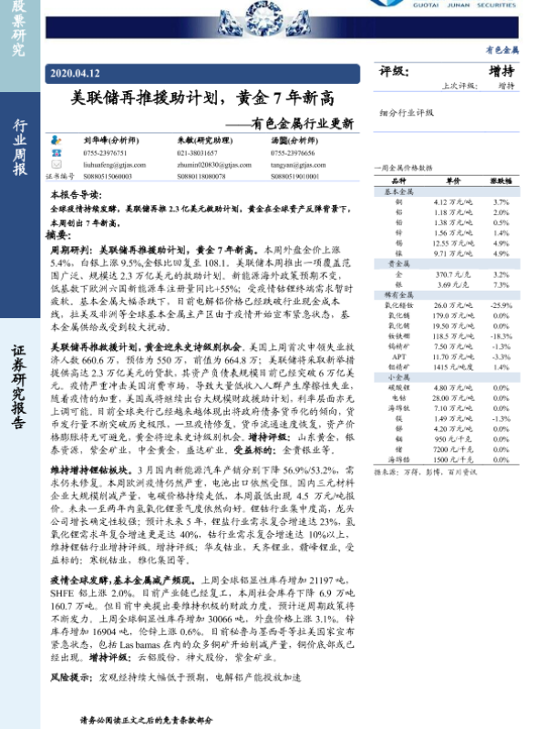 【国泰君安证券】【20200412】美联储再推援助计划,黄金7年新高-13页