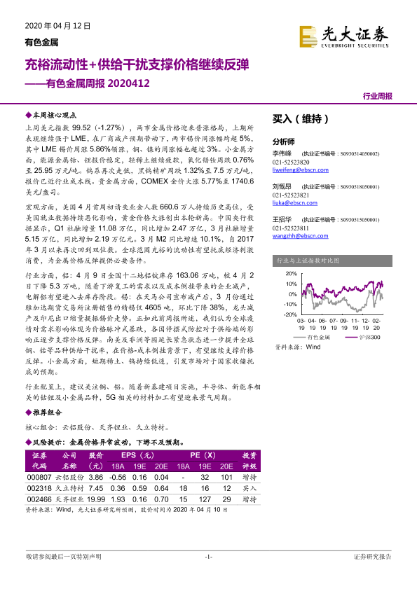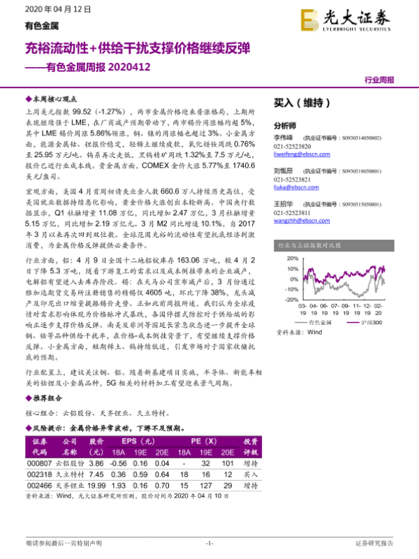 【光大证券】【20200412】20200412-光大证券-有色金属周报:充裕流动性+供给干扰支撑价格继续反弹-14页