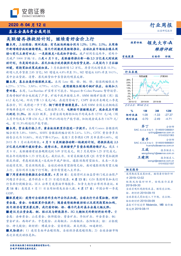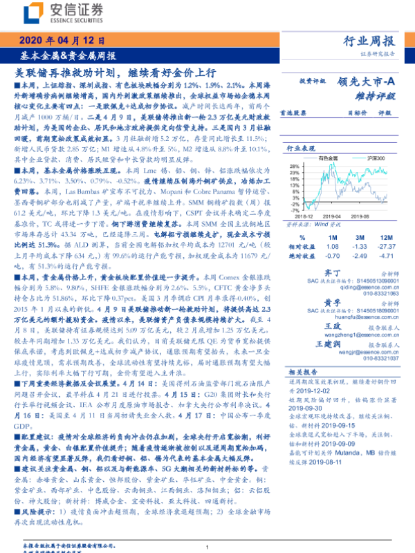 【安信证券】【20200412】20200412-安信证券-基本金属&贵金属周报:美联储再推救助计划,继续看好金价上行-17页