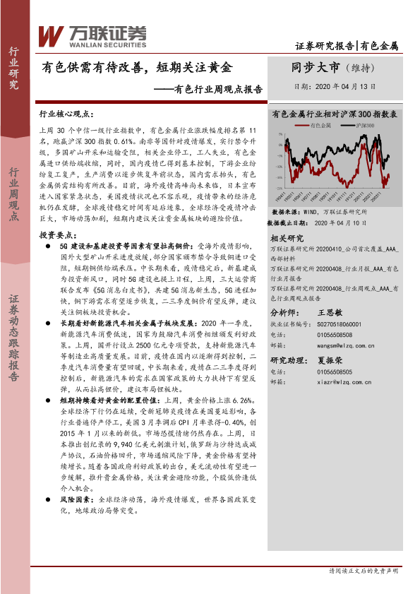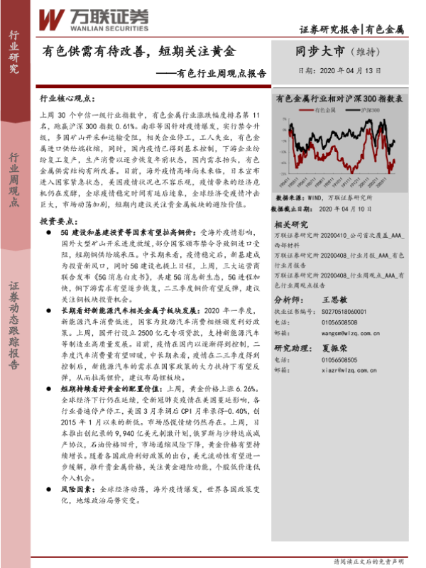 【万联证券】【20200413】20200413-万联证券-有色行业周观点报告:有色供需有待改善,短期关注黄金-14页