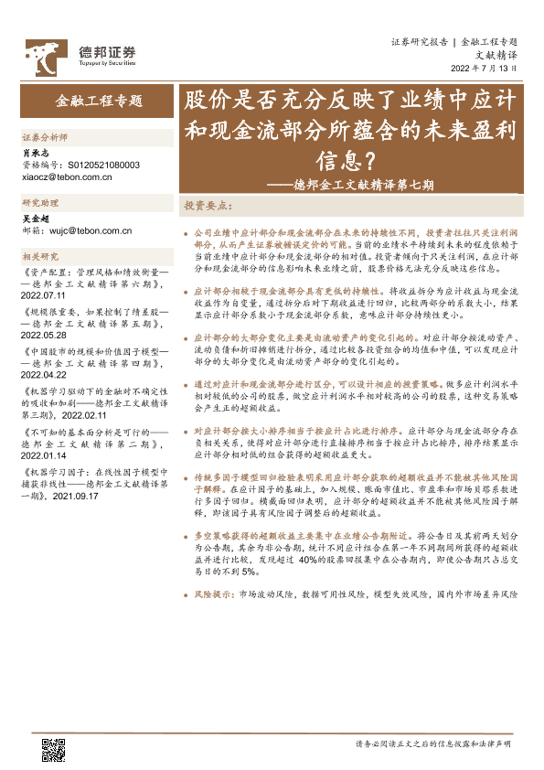 【德邦证券】【20220713】股价是否充分反映了业绩中应计和现金流部分所蕴含的未来盈利信息?-26页