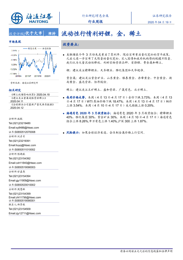 【海通证券】【20200419】20200419-海通证券-有色金属行业周报:流动性行情利好锂,金,稀土-5页