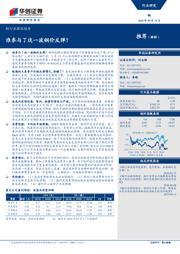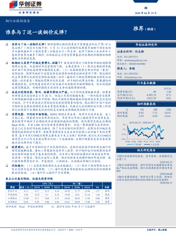 【华创证券】【20200419】20200419-华创证券-铜行业跟踪报告:谁参与了这一波铜价反弹?-11页