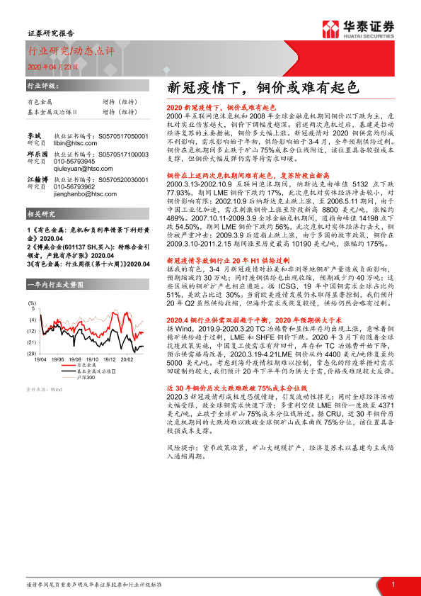 【华泰证券】【20200423】有色金属:新冠疫情下,铜价或难有起色-3页