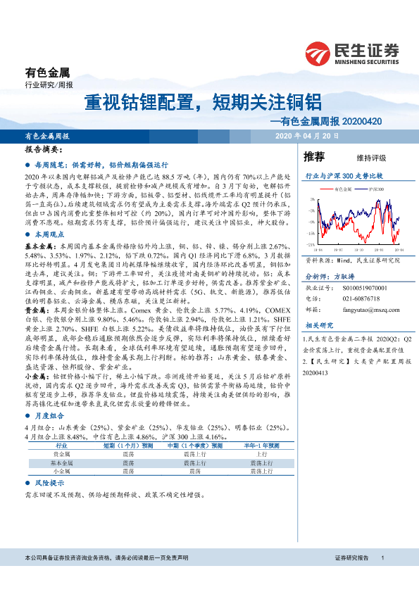 【民生证券】【20200420】20200420-民生证券-有色金属周报:重视钴锂配置,短期关注铜铝-18页