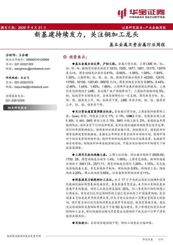 【华宝证券】【20200421】20200421-华宝证券-基本金属及贵金属行业周报:新基建持续发力,关注铜加工龙头-11页