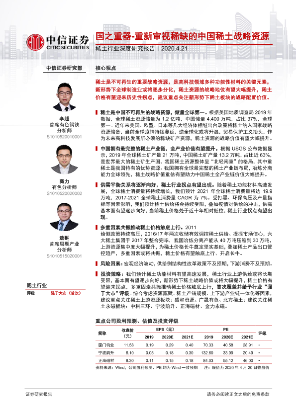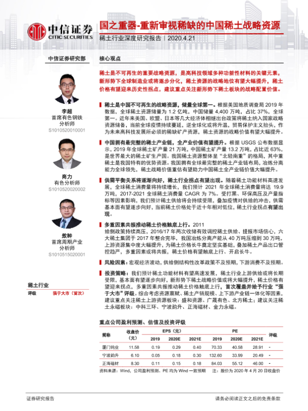 【中信证券】【20200421】国之重器-重新审视稀缺的中国稀土战略资源-40页