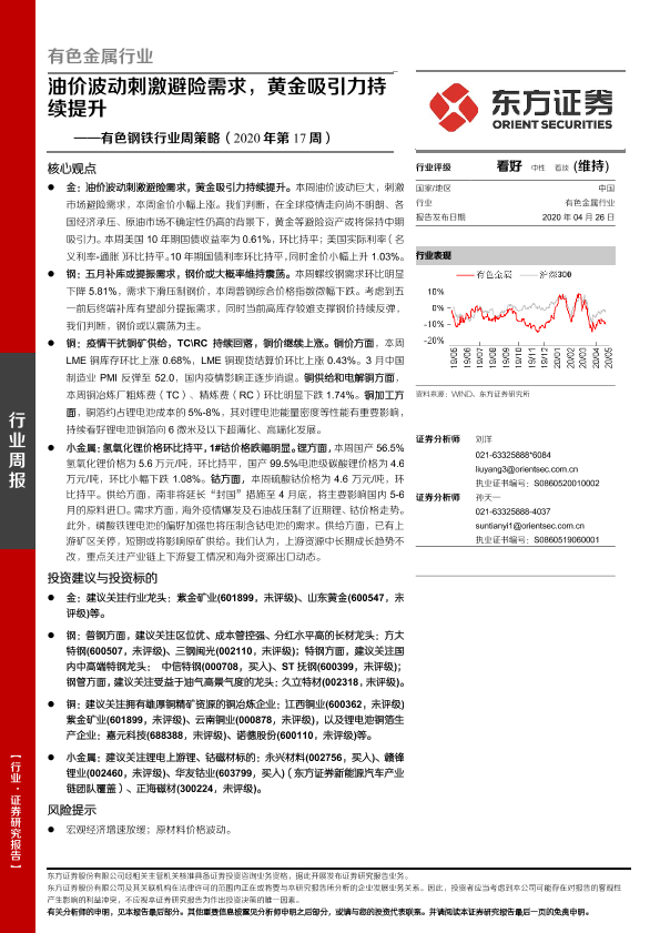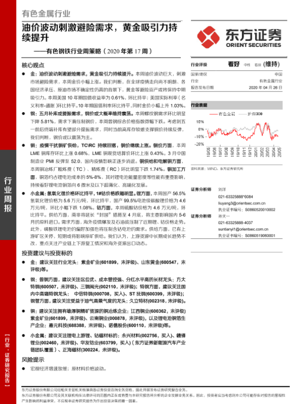 【东方证券】【20200426】20200426-东方证券-有色钢铁行业周策略(2020年第17周):油价波动刺激避险需求,黄金吸引力持续提升-27页
