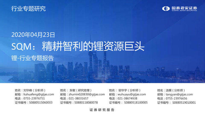 【国泰君安证券】【20200423】SQM:精耕智利的锂资源巨头-31页