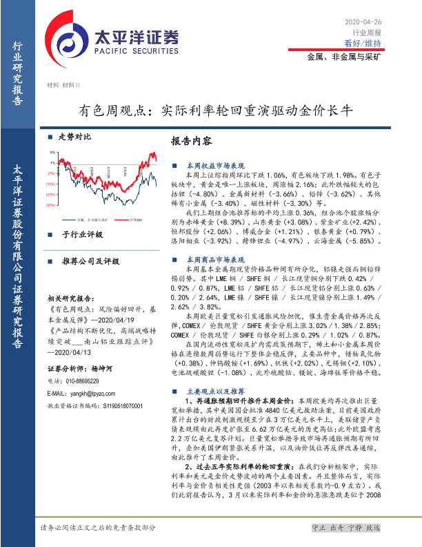 【太平洋证券】【20200426】有色周观点:实际利率轮回重演驱动金价长牛-4页
