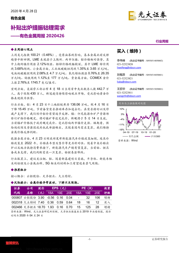 【光大证券】【20200428】20200428-光大证券-有色金属周报:补贴出炉提振钴锂需求-14页