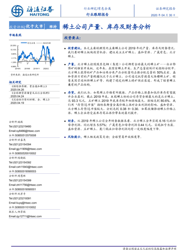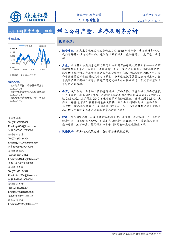 【海通证券】【20200430】20200430-海通证券-有色金属行业跟踪报告:稀土公司产量、库存及财务分析-4页