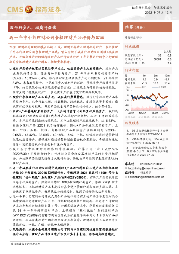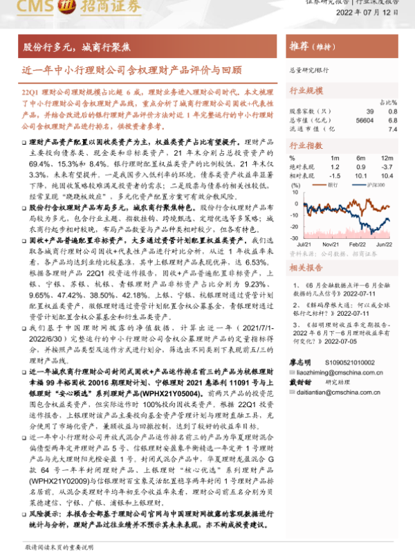 【海通证券】【20220712】银行业近一年中小行理财公司含权理财产品评价与回顾:股份行多元,城商行聚焦-17页