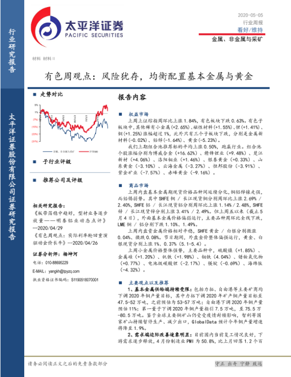 【太平洋证券】【20200505】有色周观点:风险犹存,均衡配置基本金属与黄金-4页
