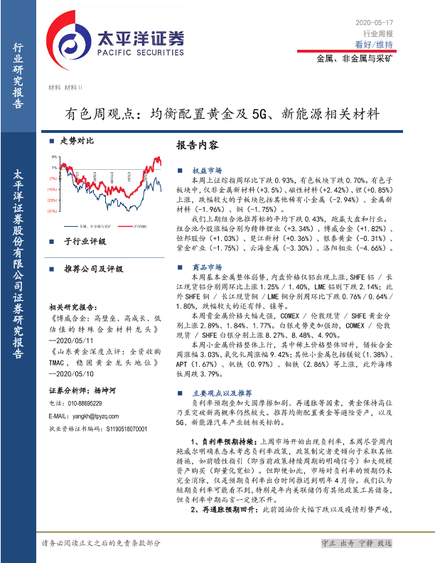 【太平洋证券】【20200517】有色周观点:均衡配置黄金及5G、新能源相关材料-4页