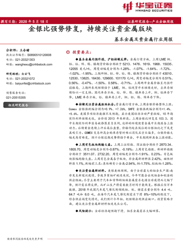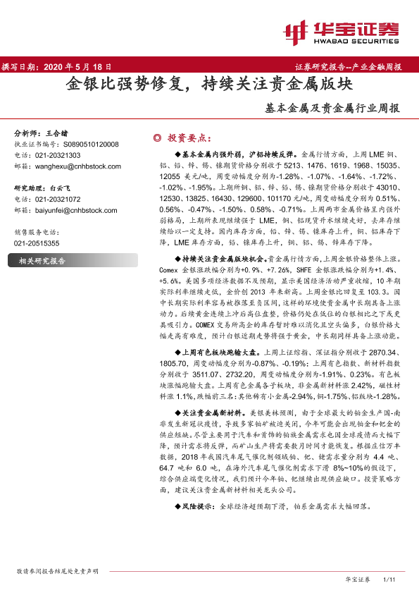 【华宝证券】【20200518】20200518-华宝证券-基本金属及贵金属行业周报:金银比强势修复,持续关注贵金属版块-11页