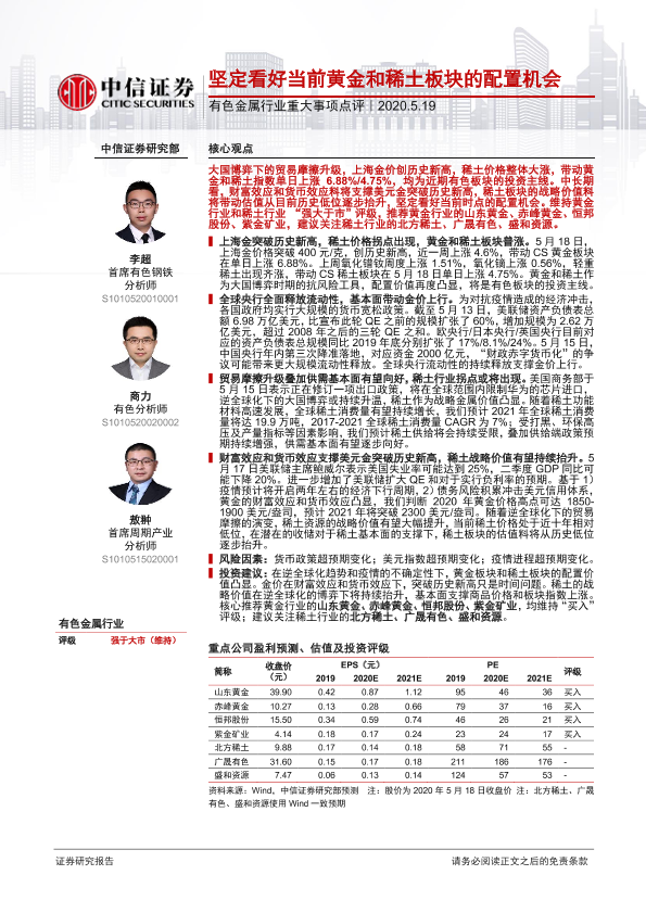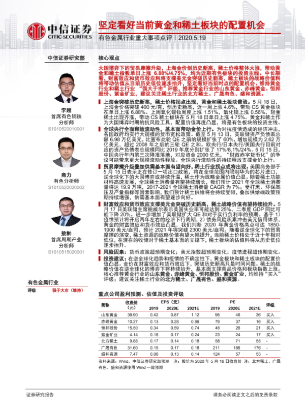 【中信证券】【20200519】坚定看好当前黄金和稀土板块的配置机会-2页
