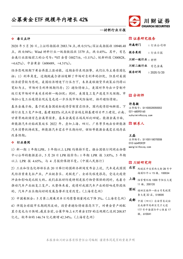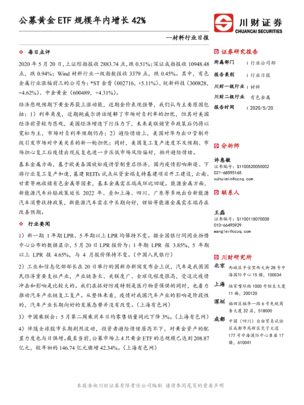 【川财证券】【20200520】公募黄金ETF规模年内增长42%-3页