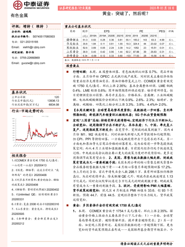 【中泰证券】【20200518】20200518-中泰证券-有色金属行业周报:黄金:突破了,然后呢?-33页